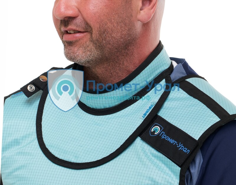 Фартуки снабжены креплениями для рентгенозащитного воротника, мягкими подплечниками и широким эластичным поясом для поддержки поясницы.