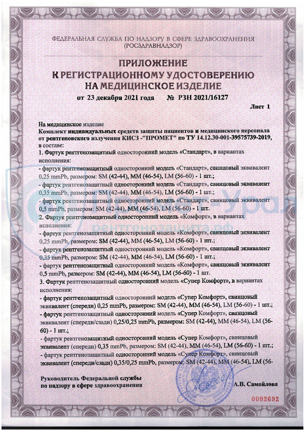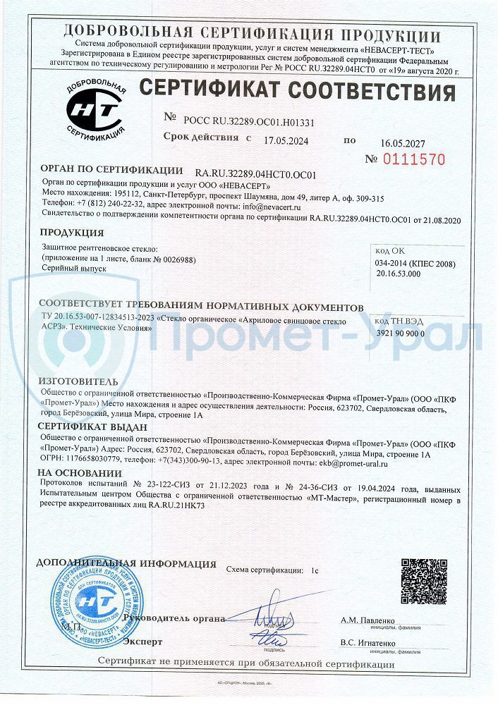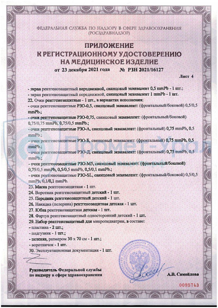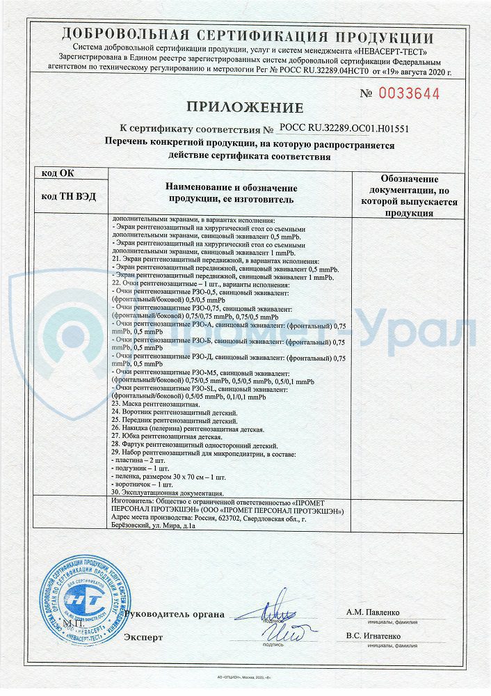 Производство рентгенозащитных изделий Промет-Урал лицензировано. Вся выпускаем рентгенозащитная продукция имеет сертификат соответствия.